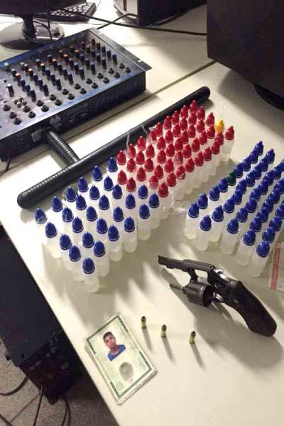 Arma e entorpecentes são apreendidos em baile funk/Fotos: Polícia Militar