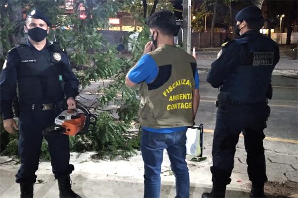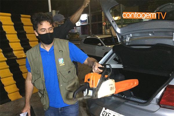 Árvores são derrubadas dentro de estacionamento em Contagem / Fotos: Robson Repórter