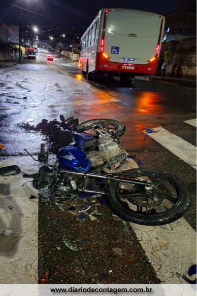 Motoboy pula da moto e escapa de ser atropelado por ônibus em Contagem