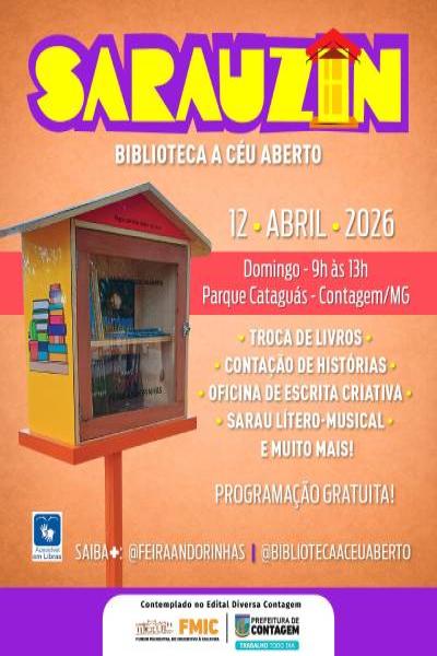 Contagem recebe, no domingo (12/4), das 9h às 13h, no Parque Cataguás, o Sarauzim, evento cultural gratuito, com a oficina de escrita criativa ministrada pela educadora Vanderleia Reis.