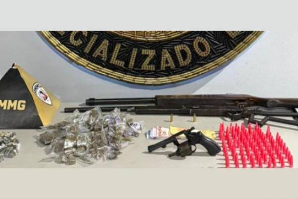 O menor tentou fugir, mas foi contido. Com ele, os militares apreenderam um revólver calibre .32, duas escopetas, munições, 151 buchas de maconha, 86 pinos de cocaína e R$ 176 em dinheiro.
